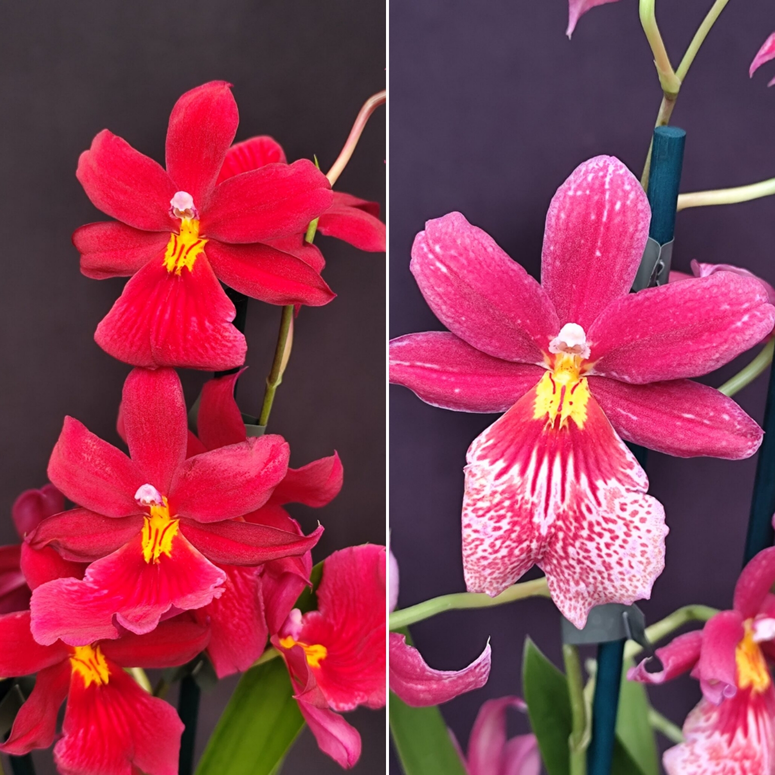 Presenta due affascinanti varianti di colore: una dal rosso pieno e vellutato, intenso e luminoso, e l’altra con il labello più chiaro e screziato, che crea un raffinato contrasto.