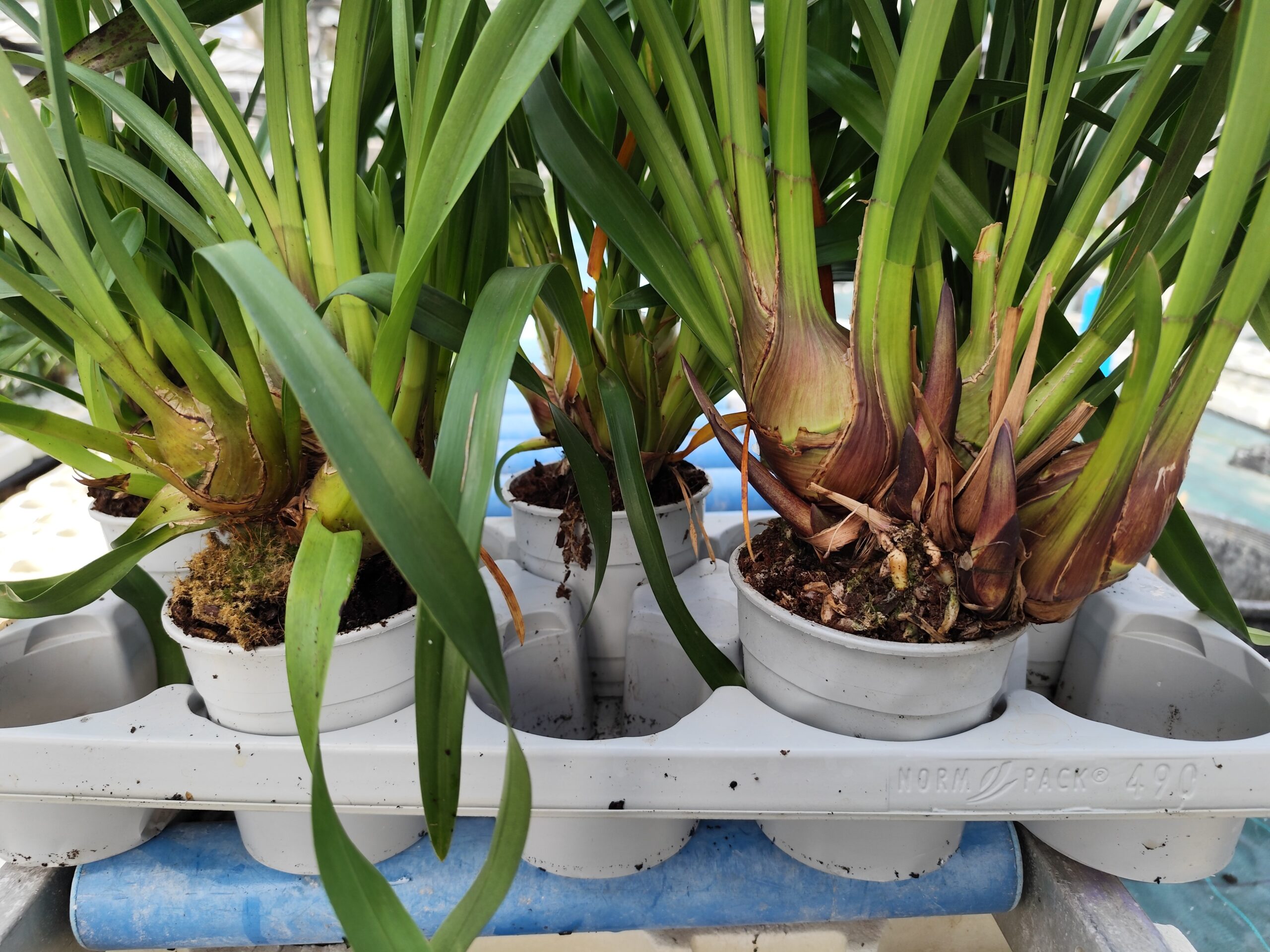 Bulbi di Cymbidium mix color mini e midi in vaso da 12 cm, provenienti da una recente semina.